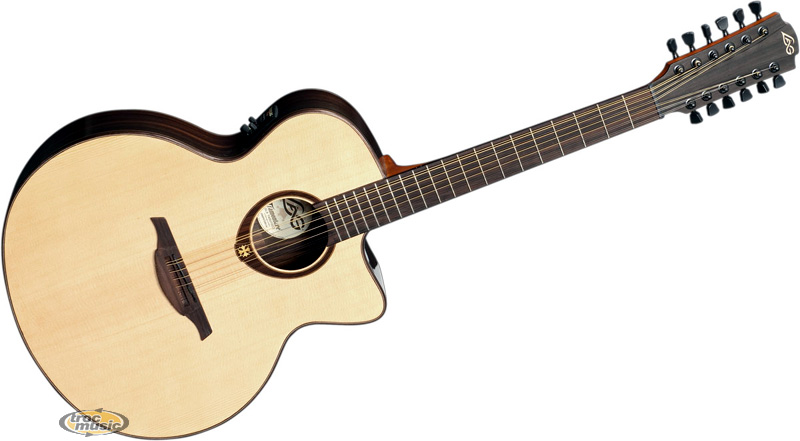 Guitare électro-acoustique 12 cordes forme Jumbo Cutaway. Table massive en épicéa de Sitka. Dos et éclisses en palissandre d'Indonésie. Electronique : Préampli StudioLâg Plus & micro piezo NanoFlex.