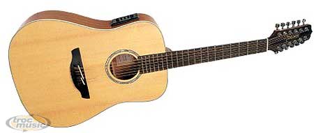 Guitare folk 12 cordes électro-acoustique. Table épicéa, dos et éclisses nato, touche et chevalet palissandre. Préampli actif TK4NT.