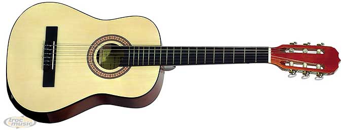 Guitare classique modèle 1/2. Caisse basswood, table épicéa, fond et éclisses catalpa.