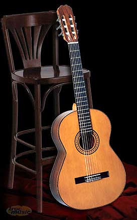 Guitare classique fabriquée en Espagne. Table cèdre massif, fond et éclisses palissandre, manche acajou, touche et chevalet mongoy.