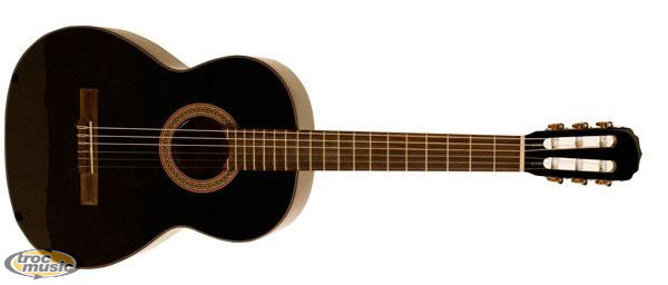 Guitare classique, table en Epicéa laminé, coloris noir brillant.