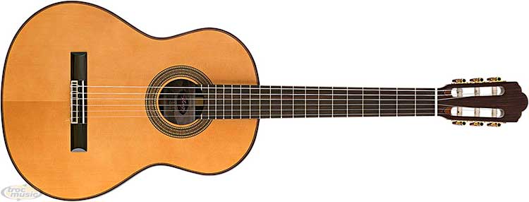 Guitare classique modèle 4/4 avec table en épicéa massif classe A. Manche acajou. Dos, éclisses et touche palissandre.