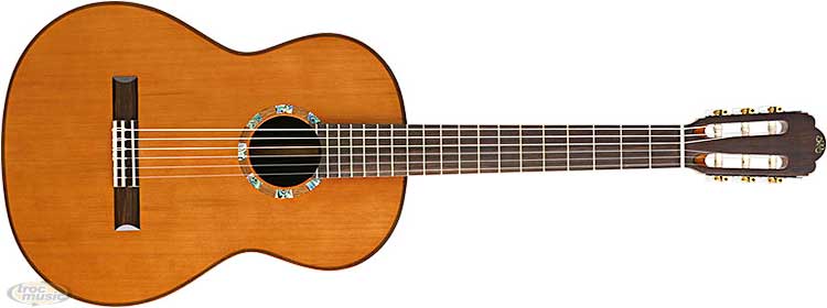 Table cèdre massif classe AA. Manche acajou. Dos, éclisses et touche palissandre.
