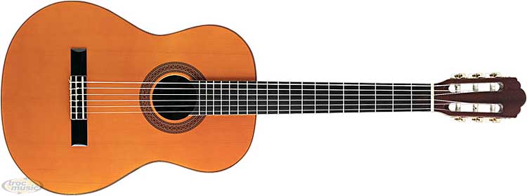 Table épicéa canadien massif. Manche acajou. Dos, éclisses et touche palissandre.
