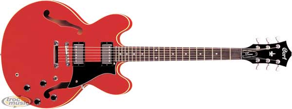 Guitare électrique type jazz demi-caisse. Table massive, dos et éclisses épicéa, manche érable, touche palissandre, micros doubles Mighty Mite Vintage.