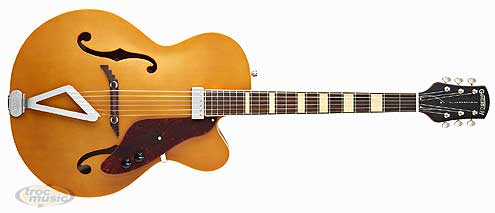 Guitare jazz électro acoustique Archtop. Table épicéa, corps creux érable. Micro simple bobinage Gretsch flottant.