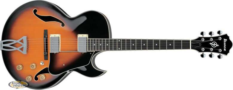 Humbucker ACH2(chevalet) + humbucker ACH1(manche) - accastillage chromé - table érable - fond et éclisses sycomore - profondeur caisse 70 mm - manche collé Artcore acajou - touche palissandre 20 cases frets medium - chevalet ART-W et cordier VT60 - plaque assortie sunburst.