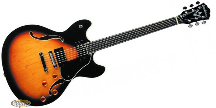 Guitare électrique type Hollowbody. Table, dos, manche et éclisses érable. Micros 2 humbuckers.