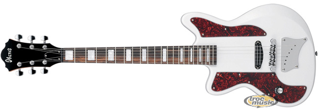 Guitare électrique gaucher Série Signature Omar Rodriguez-Lopez - The Mars Volta - blanche - avec housse. Mini Humbucker ACH-B2 (chevalet) à haut niveau de sortie - corps acajou - manche acajou ORM 3 parties - frettes médium - chevalet Gibraltar III - plaques pearloid.