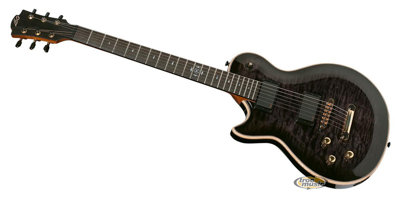 | Tête : Design Impérator, ébène avec logo érable. Tige de réglage : Double sens + 2 barres de stabilité en titanium. Manche : 3 pièces en acajou, collé, avec jonction ergonomique. Touche : Ebène avec filet ébène. Frettes : 22, Silver-Nickel, Médium. Repères : Mother-of-pearl. Corps : Table en érable pommelé avec filet en érable naturel sur corps acajou massif (Book-matched). Micros : 2 double-bobinage EMG (EMG-81TW chevalet + EMG-89 manche). Electronique : 2 volumes indépendants avec push-pull (Split), 1 master tonalité, sélecteur de micros 3 positions (Toggle). Accastillage : Doré et noir. Finition : Vernis brillant. Cordes : Elixir. Etui : Deluxe Impérator Croco. |