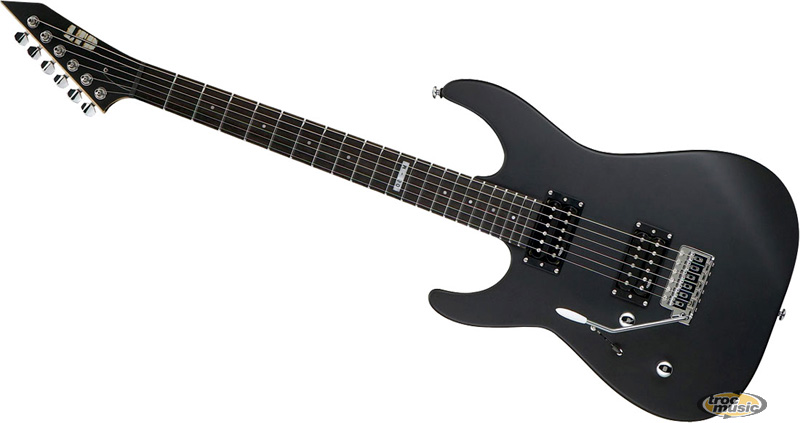 Guitare électrique gaucher noir satin. Version gaucher de la M50. Corps en Basswood. Manche vissé 22 cases en érable. Touche en palissandre, frettes Jumbo. Repères par ''points'' nacrés incrustés avec nom du modèle à la 12ème case. 2 micros ESP LH-150. Tremolo Vintage ESP. Mécaniques à bain d'huile. Accastillage chromé.