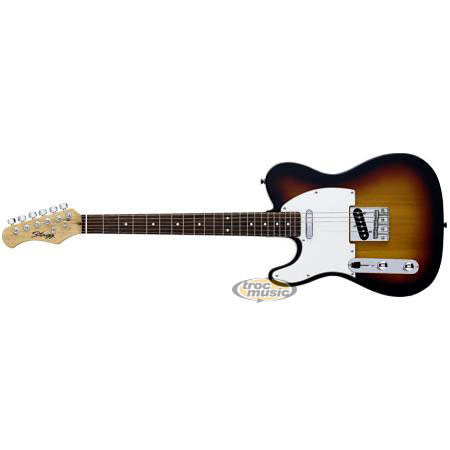 Guitare électrique gaucher forme Telecaster, couleur Sunburst. 2 Micros simple bobinage. Corps aulne massif, manche érable vissé, touche palissandre 22 cases.
