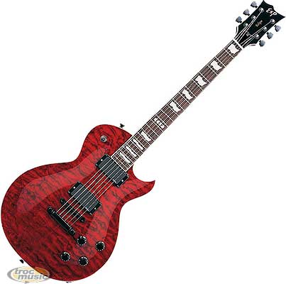 Guitare de forme Les Paul. Corps acajou, manche 24 cases acajou, touche palissandre, frettes Jumbo, 2 micros double actifs EMG.