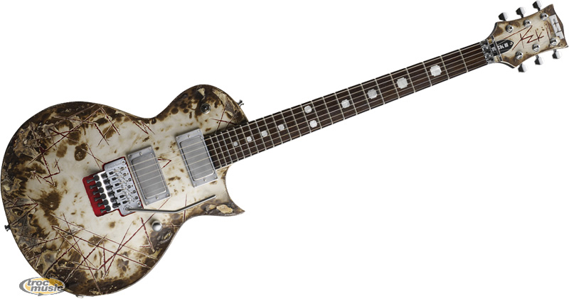 | Guitare électrique type LP Signature Richard Z, finition blanc brûlé. Corps en aulne. Manche traversant 24 cases, en érable. Touche en palissandre, frettes Jumbo. Repères par ''croix'' nacrés incrustés. 2 micros EMG-81, électronique active. Floyd Rose original. Mécaniques à bain d'huile Gotoh. Accastillage chromé. 1 contrôle de volume et 1 switch 3 positions. Livré en étui ESP. |