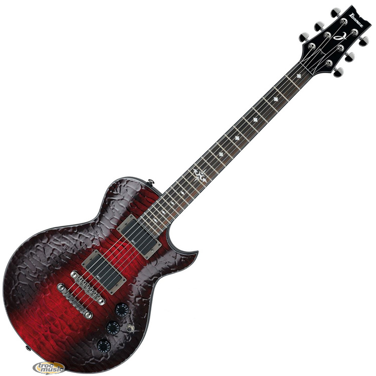 Finition rouge aspect crocodile - EDITION LIMITEE. Humbucker LZ1-N (manche) + humbucker LZ1-B (chevalet) - accastillage chrome noir - corps acajou et table finition croco - manche collé ART acajou - touche palissandre 22 cases frets medium - chevalet Gibraltar III et cordier Quik Change III.