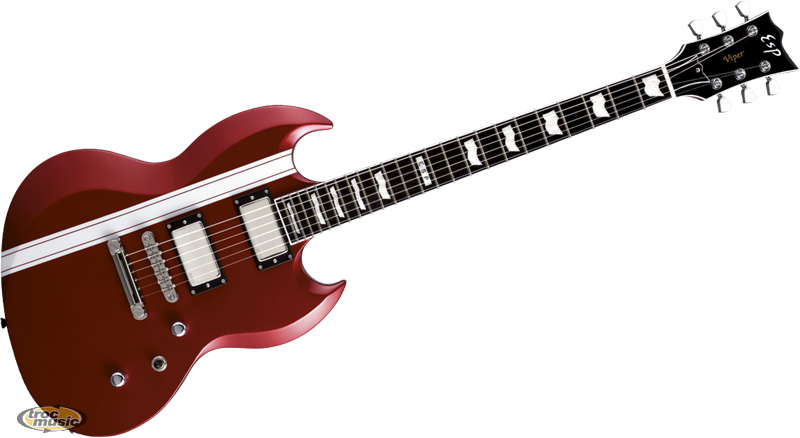 | Guitare électrique type SG Standard, finition Rouge Racing Opaque. Corps en Acajou. Manche collé, 24 cases, en Acajou. Touche en ébène, frettes Jumbo. Repères par ''Flag'' nacrés incrustés, incrustation ''ESP'' à la 12ème case. Micros EMG60 et EMG81. 1 contrôle de tonalité et 1 de volume avec switch 3 positions. Cordier stop Bar et chevalet Tune-O-Matic Gotoh. Binding blanc sur le corps, le manche et la tête. Mécaniques à bain d'huile autobloquantes Gotoh. Accastillage chrome. Livrée en étui. |