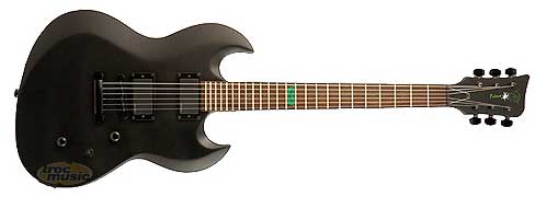 Guitare de forme SG. Corps massif en tilleul. Manche collé en érable. 2 Micros double.