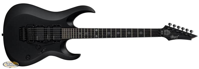Corps acajou. Manche érable. Touche palissandre. 2 doubles EMG-HZ H4 et un simple EMG-HZ S3. Vibrato double blocage III. Accastillage noir satiné. Noir satiné.