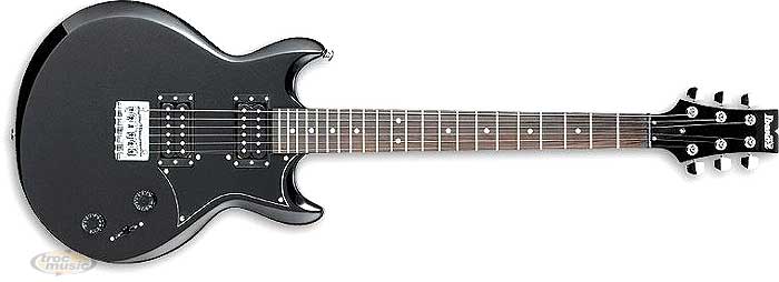 Corps agathis. Manche GAX érable. Touche palissandre 22 cases. Humbucker PSND2 (chevalet) + humbucker PSND1 (manche). Accastillage chromé. Chevalet fixe. plaque noire. Livrée en housse. Finition noir métal.
