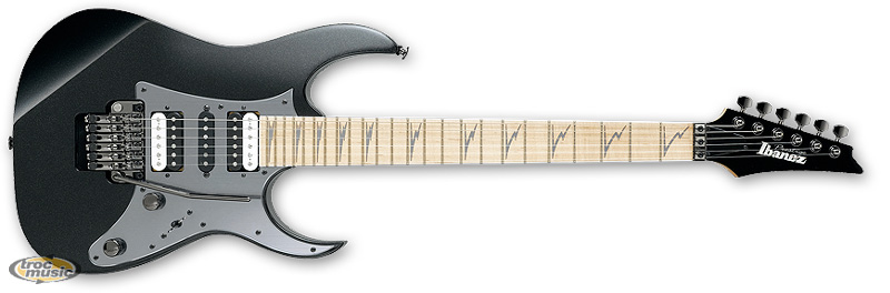 Guitare électrique Ibanez Prestige Japan - noire - avec étui. Humbucker DiMarzio Air Norton (manche) + humbucker DiMarzio Tone Zone (vibrato) + single coil DiMarzio True Velvet (central) - accastillage chrome noir - corps tilleul - manche Super Wizard Prestige érable/noyer - touche érable 24 cases jumbo - incrustations dents de requin - vibrato Edge Zero avec système ZPS3 - plaque aluminium.