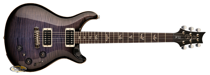 Corps en acajou. Table en érable figuré (flammé en option). Manche en acajou. Touche en palissandre avec 22 frettes et incrustations PRS Birds. Diapason : 25''. 2 micros sans cache 53/10. Sélecteur de micros à 5 positions de type lame. Chevalet PRS avec Piezo et cordier réglable. Mécaniques bloquantes PRS Phase III. Accastillage nickel (doré en option). Finition V12, 20 coloris au choix.