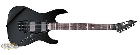 Guitare électrique Signature Kirk Hammet. Corps en aulne. Manche conducteur, 24 cases, en érable. Touche en palissandre, frettes Jumbo. 2 Micros EMG-81, électronique active.