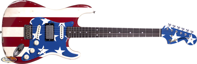 | Corps en Aulne. Manche vissé en érable, Profil ''Modern C'', Touche palissandre, 21 frettes types Vintage. Diapason 25.5'', Radius 7.25''. Configuration S/H/S, Micro Strat style vintage en position manche et chevalet, Micro Seymour Duncan en position intermédiaire. Sélecteur 5 positions. Mécaniques vintage Style ''F''. Accastillage chromé. Finition Stars and Stripes. Livrée en Housse Deluxe Fender. |