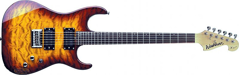 Guitares électrique de forme Stratocaster. Corps tilleul, manche érable vissé 24 cases, touche palissandre. Micros 2 humbuckers Washburn.