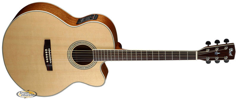 Guitare folk électro-acoustique CORT de la série CJ. Table épicéa Engelmann massif. Fond & éclisses acajou massif. Manche acajou. Touche palissandre. Mécaniques Grover. EQ Fishman Prefix Plus T. Diapason 643 mm. Corps 100 x 125 mm. Sillet 43 mm. Naturel brillant.