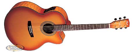 Jumbo pan coupé. EQ Fishman Prefix Plus T. Table épicéa Engelmann massif. Fond, éclisses et manche érable, touche palissandre. Couleurs: NAT, AB, BLB, LVB.