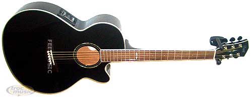 SFX5, Slim pan coupé, table épicéa massif, fond, éclisses et manche acajou, touche palissandre, Préampli Fishman AERO avec accordeur intégré, noire.