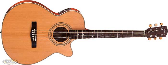Corps mini jumbo, single cutaway electro acoustique. Table cèdre, caisse acajou, manche nato, touche palissandre. Préampli Fishmann Classic 4.