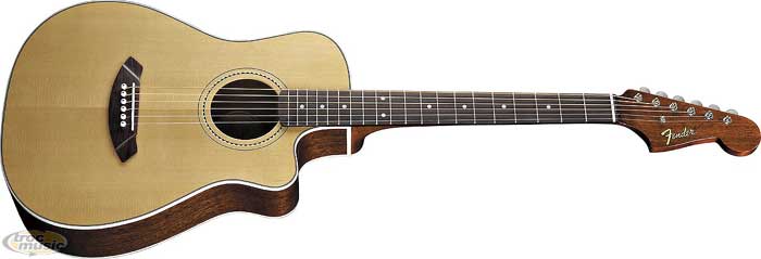 Table Spruce, dos, éclisses et manche acajou, touche palissandre, électronique Fender/Fishman Classic 4T.