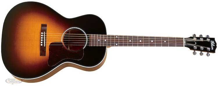 Guitare acoustique folk style L-00. Table épicéa Sitka massif. Corps bubinga Africain. Manche acajou, touche palissandre, profil en V. 19 Frettes. Electronique : active avec contrôle de volume dans la rosace.