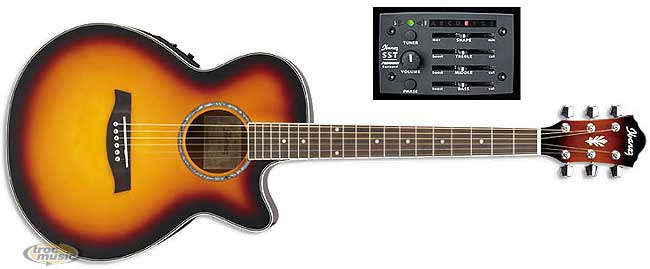 Table spruce. Fond, éclisses et manche acajou. Micro fishman sonicore, préamp SST avec accordeur. Finition: Vintage Sunburst.