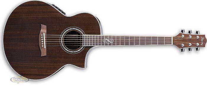 Table, fond et éclisses cordia naturel. Manche acajou. Touche et chevalet palissandre. Micro B-Band UST. Préamp Ibanez SRTn avec accordeur. Pan coupé.