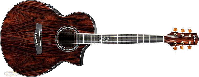 Table, fond et éclisses cocobolo. Manche acajou. Chevalet et touche ébène avec incrustation abalone. Micro B-Band UST. Préamp Ibanez SRTn avec accordeur.