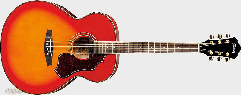 Corps jumbo cherry sunburst. Table épicéa. Fond, éclisses érable flammé. Micro magnétique AP3. Préamp Ibanez AEQ200MT avec accordeur.