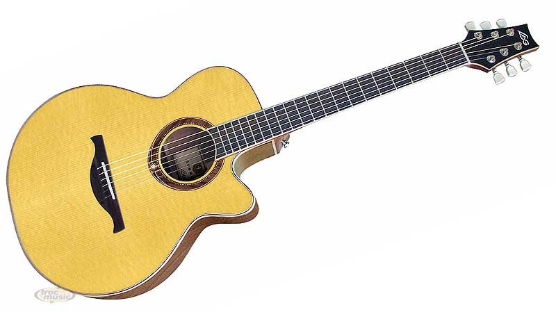 Guitare Baby Jumbo Cutaway. Table épicéa massif. Manche acajou. Dos et éclisses sapelli. Préampli STUDIOLAG et micro NanoMag.