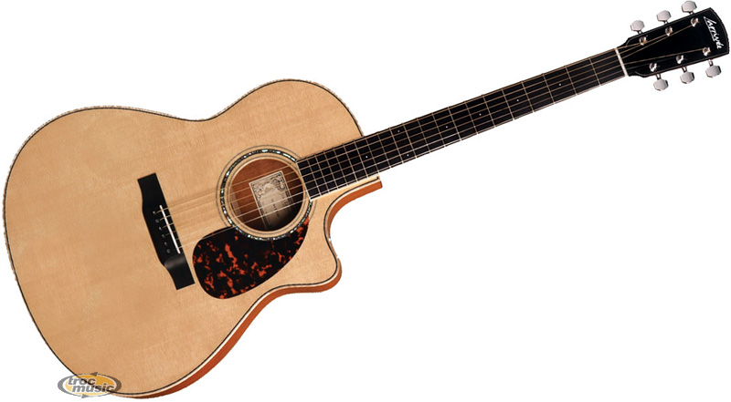 | Tête : Larrivée avec logo Pearl & Argent incrusté. Mécaniques : Chrome 18:1. Sillet de tête : Tusq, 44,45 mm. Manche : Acajou, 1 pièce. Touche : Ebène africain avec filets ivoire. Frettes : Silver/nickel. Table : Massive en épicéa de Sitka. Rosace : Incrustée en Abalone. Dos & Eclisses : Acajou massif avec filets en érable naturel du Canada. Chevalet : Ebène africain avec sillet compensé en Tusq. Finition : Brillante (manche satiné). Cordes : D'Addario. Etui : Archtop Larrivée. Electronique : L.R. Baggs Element Notch. |