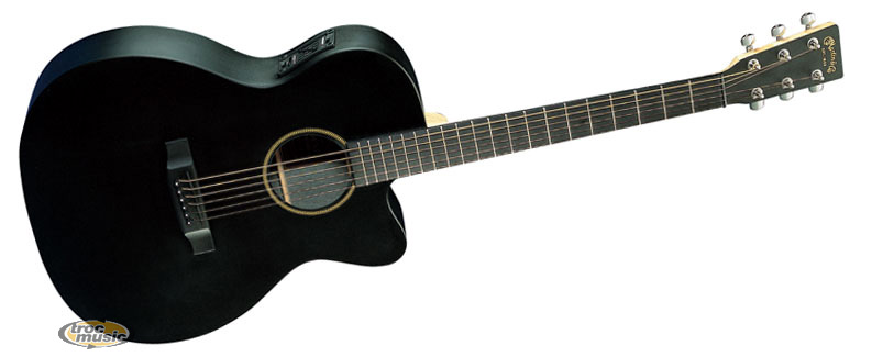 Modèle électro-acoustique série X. Table dos et éclisses HPL finition Jett Black. Rosace dorée et noire style herringbone. Barrage 000-1. Touche et chevalet micarta noir. Pas de plaque de protection. Mécaniques chromées avec petits boutons. Préampli Fishman Prefix Pro.