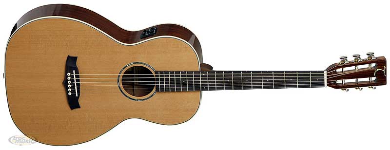 Table en cèdre Canadien massif. Dos et éclisses acajou. Manche et tête une pièce en acajou massif. Egaliseur B-Band A3TY (accordeur intégré).