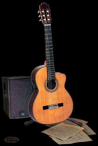 Guitare pan coupé. Table cèdre massif, fond et éclisses palissandre, manche acajou, touche ébène, EQ Fishman Prefix Pro Blender.