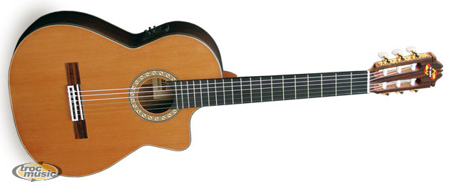 Guitare Electro-Nylon, Pan Coupé. EQ Shadow Performer Pro. Table Cèdre Massif. Fond et Eclisses Palissandre. Manche Acajou Avec Renfort Ebène. Touche ébène. Chevalet palissandre. Mécaniques dorées.