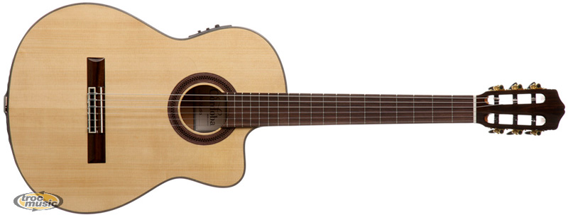 | Descriptif Technique : | | | | Guitare type flamenco modèle Gipsy Kings taille profonde, table massive spruce, dos et éclisses en cyprès, touche palissandre, mécaniques dorées, boutons noirs, cordes savarez, pré-ampli Fishman 4 bandes,1 micro chevalet et 1 micro interne avec accordeur digital, housse incluse. |