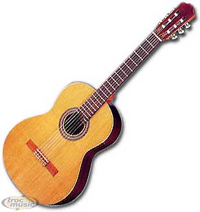 Modèle pan coupé (Cutaway) de conception artisanale. Table cèdre, fond, éclisses et manche acajou, touche palissandre, Préampli Fishman, égaliseur 4 bandes.