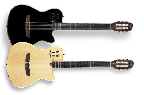 Guitare électro-acoustique cordes nylon série Multiac. Manche en acajou. Touche en ébène. Rayon de 40,6 cm. Diapason de 64,75 cm. Sillet de 4,35 cm (1.715''). Corps en érable agenté à chambre acoustique avec table en cèdre. Composantes électroniques RMC avec prise 13 broches. Finis Naturel Satiné ou Noir perlé Lustré.