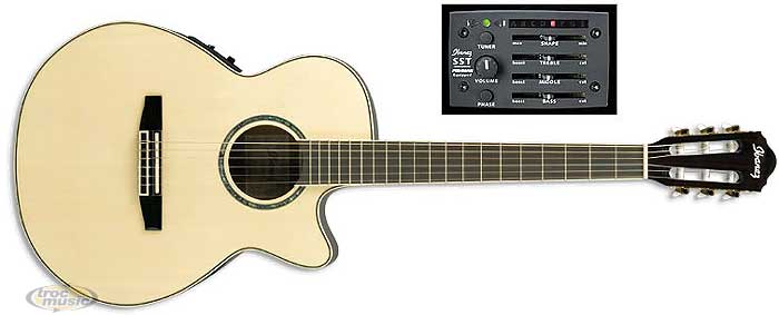 Guitare électro-nylon, table Spruce, fond, éclisses et manche acajou. Micro Fishman Sonicore, préamp SST avec accordeur.