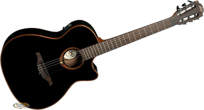 | Tête : Palissandre d'Indonésie. Mécaniques : Classiques, noir satin avec boutons ''Tulipe''. Sillet de tête : Graphite, 46 mm. Tige de réglage : Double sens. Manche : Acajou finition dorée satinée. Touche : Palissandre d'Indonésie, finition huile de lin. Frettes : 20, silver-nickel, médium. Table : Cèdre rouge massif. Rosace : Tramontane à croix occitane. Dos & Eclisses : Acajou, avec filets acajou, érable et noir. Chevalet : Palissandre d'Indonésie. Sillet de chevalet : Compensé en graphite. Finition : Noire, vernis brillant. Cordes : D'Addario. Electronique : Préampli StudioLâg & micro piezo NanoFlex. |