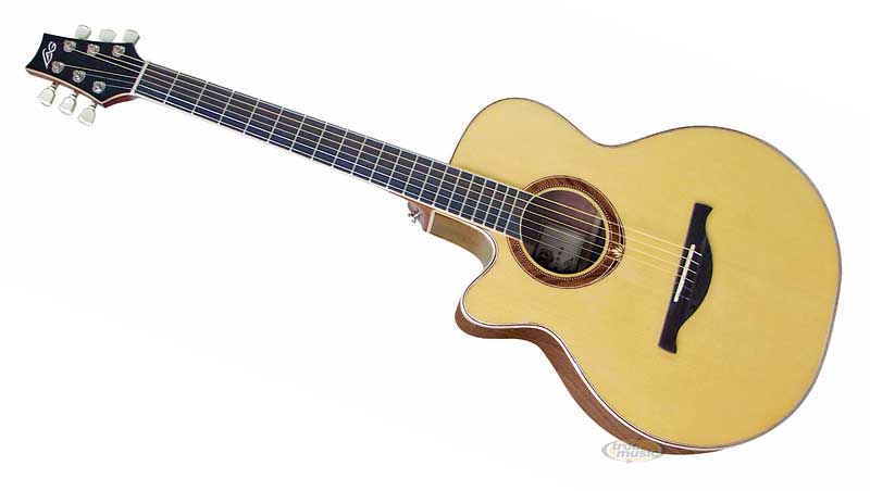 Guitare gaucher Baby Jumbo pan coupé électro-acoustique. Table épicéa, manche nato, dos et éclisses acajou. Préampli Studiolag et micro NanoMag.